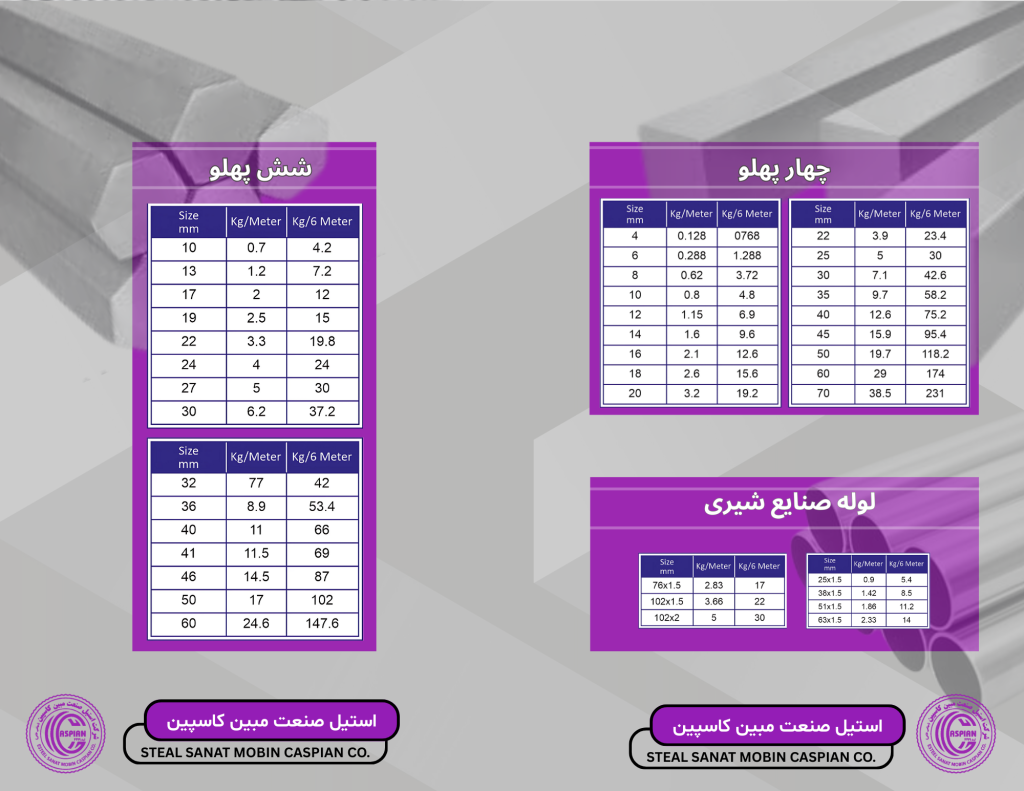 جدول وزنی چهار پهلو استیل یکی از ابزارهای مهم و کاربردی در صنایع مختلف به شمار میآید. این جدول به طور خاص برای اندازهگیری وزن ورقهای چهار پهلو استیل طراحی شده و به مهندسان و پیمانکاران کمک میکند تا بتوانند به راحتی میزان وزن قطعات مورد نیاز خود را محاسبه کنند.